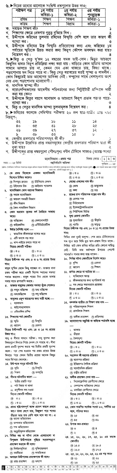HSC Psychology 1st Paper Model Question for all boards for the hsc students. You are welcome to download the question paper as pdf by using any pdf tools. You can also use any firefox addons or chorome extensions. You can also press ctrl+p to print the document quickly. If you install the Foxit PDF printer in your computer, you can easily download the images as pdf. If you like to see the images as zoom, just click on the images and see to big font. I hope you will be satisfied to take a good preparation for the coming hsc examination. We will keep collecting suggestions for you and post here for your download. Now let's download the HSC Psychology 1st Paper Model Question for All Boards.